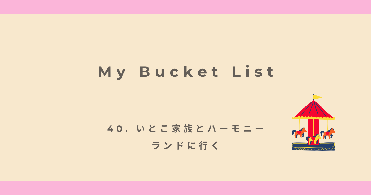 バケットリストにもある、いとこ家族とのハーモニーランド行けました。人数が増えて最終的に親族一同で行ってきました。体調も悪くならず、2日間楽しめて本当に良かった。わいわい楽しかったー!