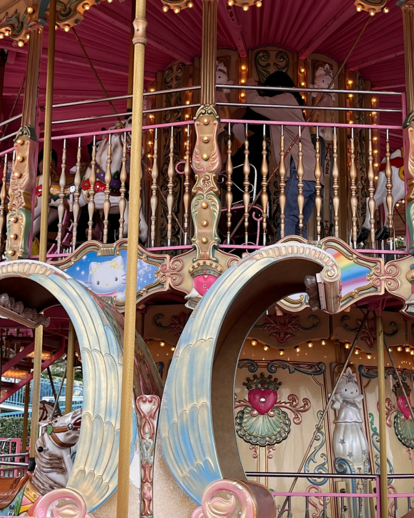 レストランを後にしてみんなでアトラクションエリアへ。やっと晴れてくれました。こどもたちはメリーゴーランドや小さいジェットコースターなどとても楽しんでいてよかった。私は観覧車と空中をエンジンで進むゴーカートみたいな乗り物?とか軽めのやつに参加しました。観覧車からは遠くの景色まで見ることができてすごくよかったですよ~意外と高さがあってスリルも。